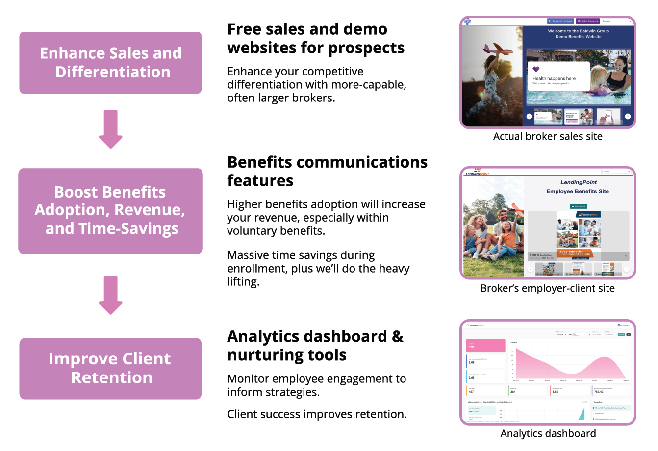 Plus, our services extend all the way to your clients, so you can effortlessly give each of your clients administrative access to their LearnYour Benefits site for additional client stickiness and time savings.